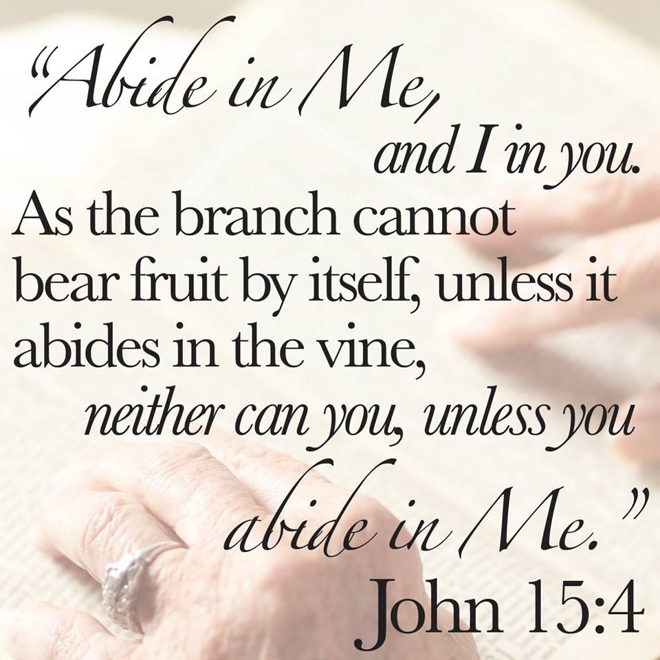 As you read today’s passage, count how many times the words “remain in” are used. Sometimes the phrase is translated as “abide in,” as Jesus says that he is going to make his home inside of us and our spiritual home inside of God.