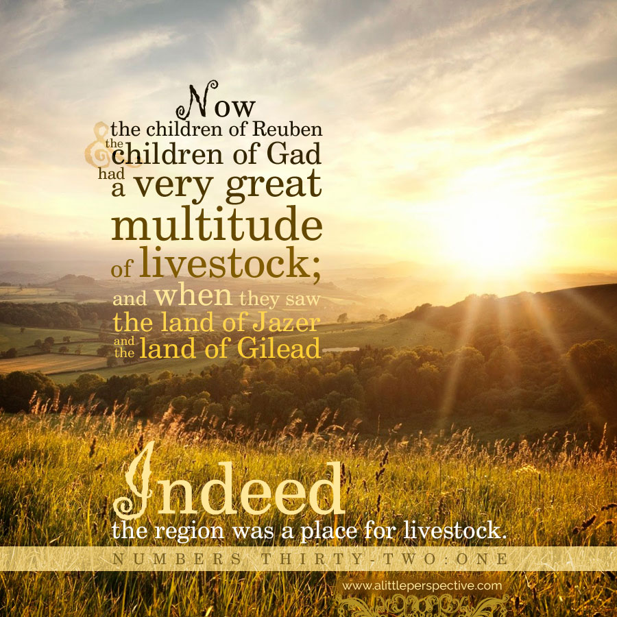Two and a half tribes request Moses that they stay on the east side of the Jordan. Moses has to be sure that this is not due out of fear to enter into the Promised Land. He wants to be sure that they are not in rebellion about going into the Promised Land, as happened earlier in chapters 13 and 14. The cooperation of all of God’s people is needed in order for the conquest to take place. We are “our brother’s keeper,” as implied in Genesis 4:9, after Cain murdered his brother Abel.