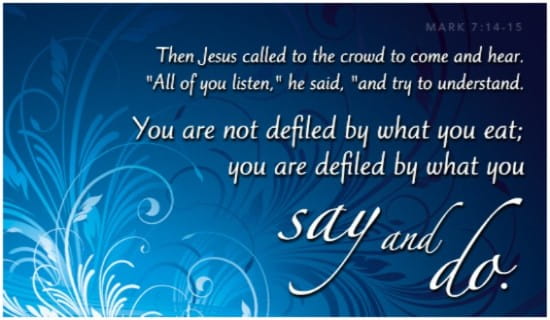 What is within defines what comes out. If your heart is right, then what you say and do will be expressive of the goodness of your inner state of soul. However, if your heart is insincere, then the outer feigning of religious activity will be a sacrilege that defiles you.