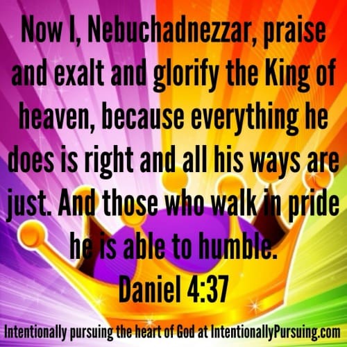 Take the last verse of the chapter, verse 37.  It would be a good idea to memorize that verse and let it be with you all this day so that you too can learn in your own way what the King of Babylon had to learn the hard way.