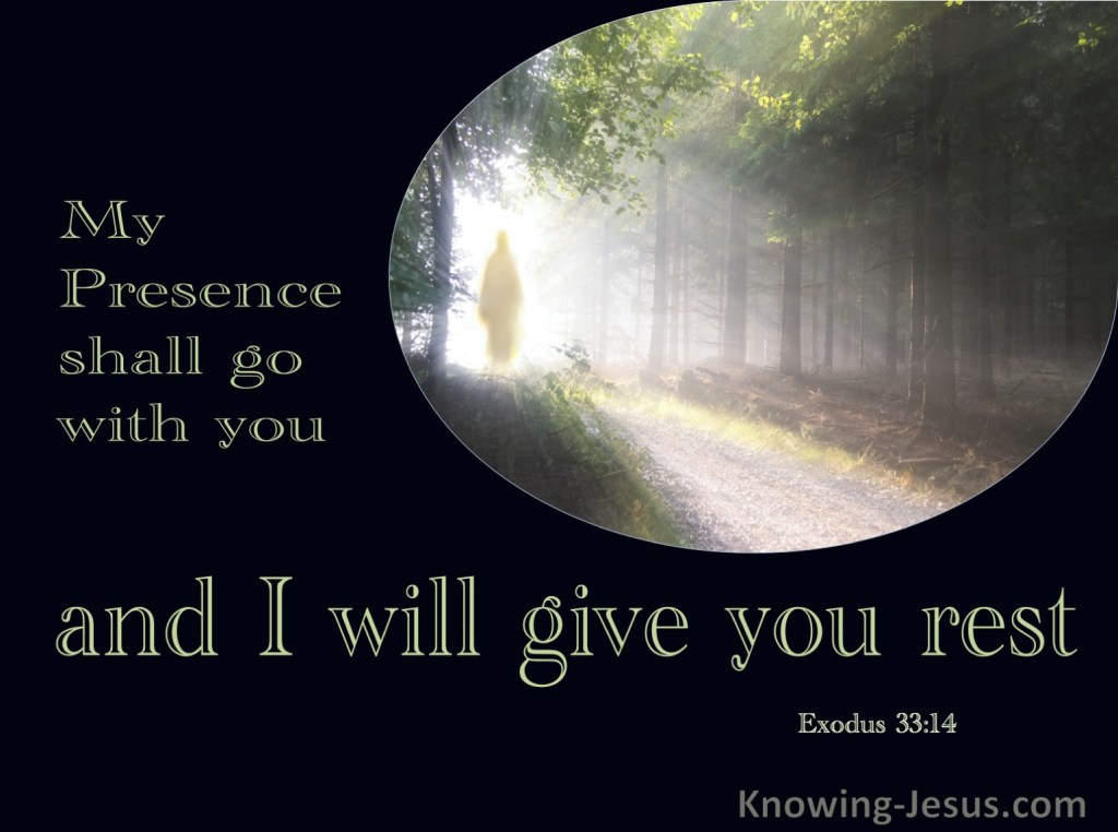Example: “My presence will go with you.” 33:14