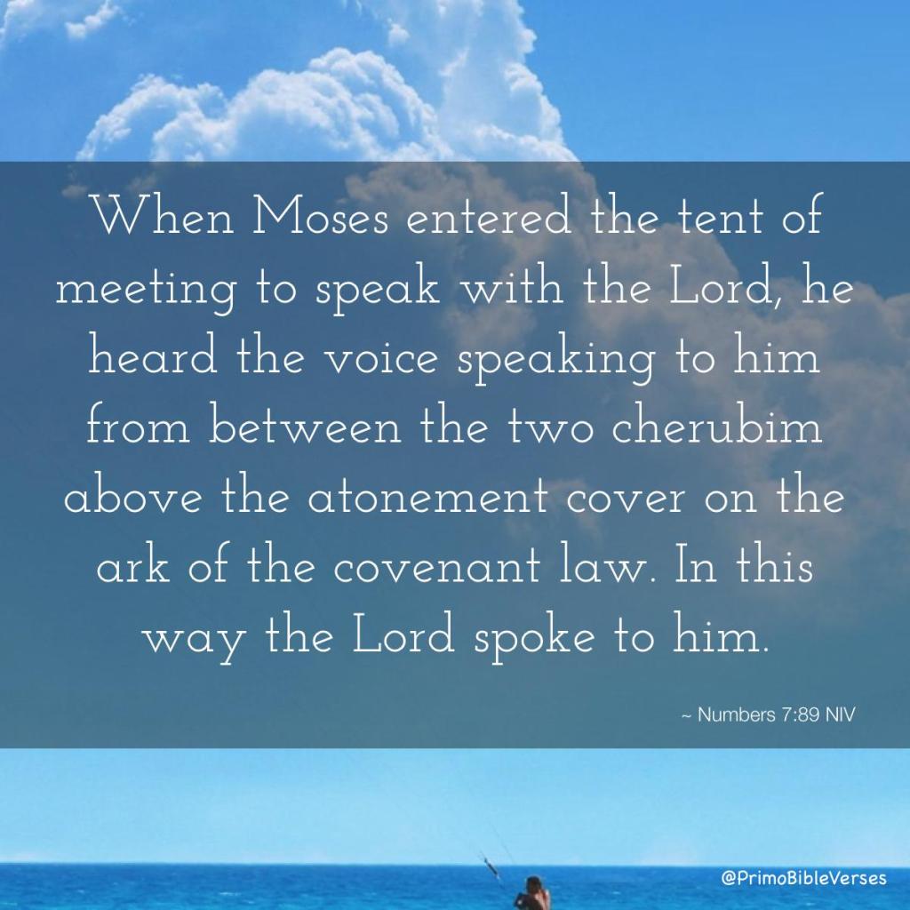 The first and final verses of this chapter frame the content. Moses anoints the tabernacle and its furnishings, heightening the sense of the sacred. The passage closes with a description of how God communicates with the people—to Moses first, and through him to others. The chapter is about being in touch with God.