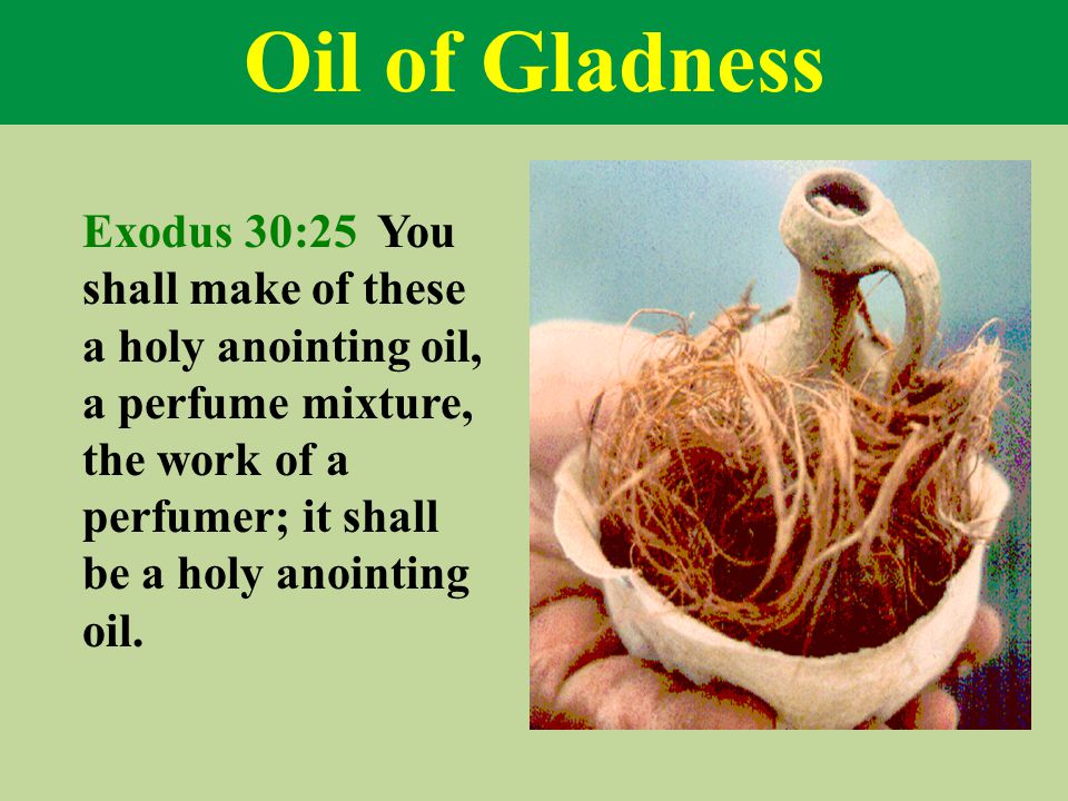 The barrenness of the desert surroundings are set in marked contrast with the materials that are to become the sacred articles of the wilderness tabernacle. Three of them are the gifts of the Magi to Jesus. As sense of the sacred is heightened by having the ingredients for anointing oil and incense be used for these purposes only. The sense of smell, the most powerful sense that links us to memory, reminds the people of the sacred presence of God.