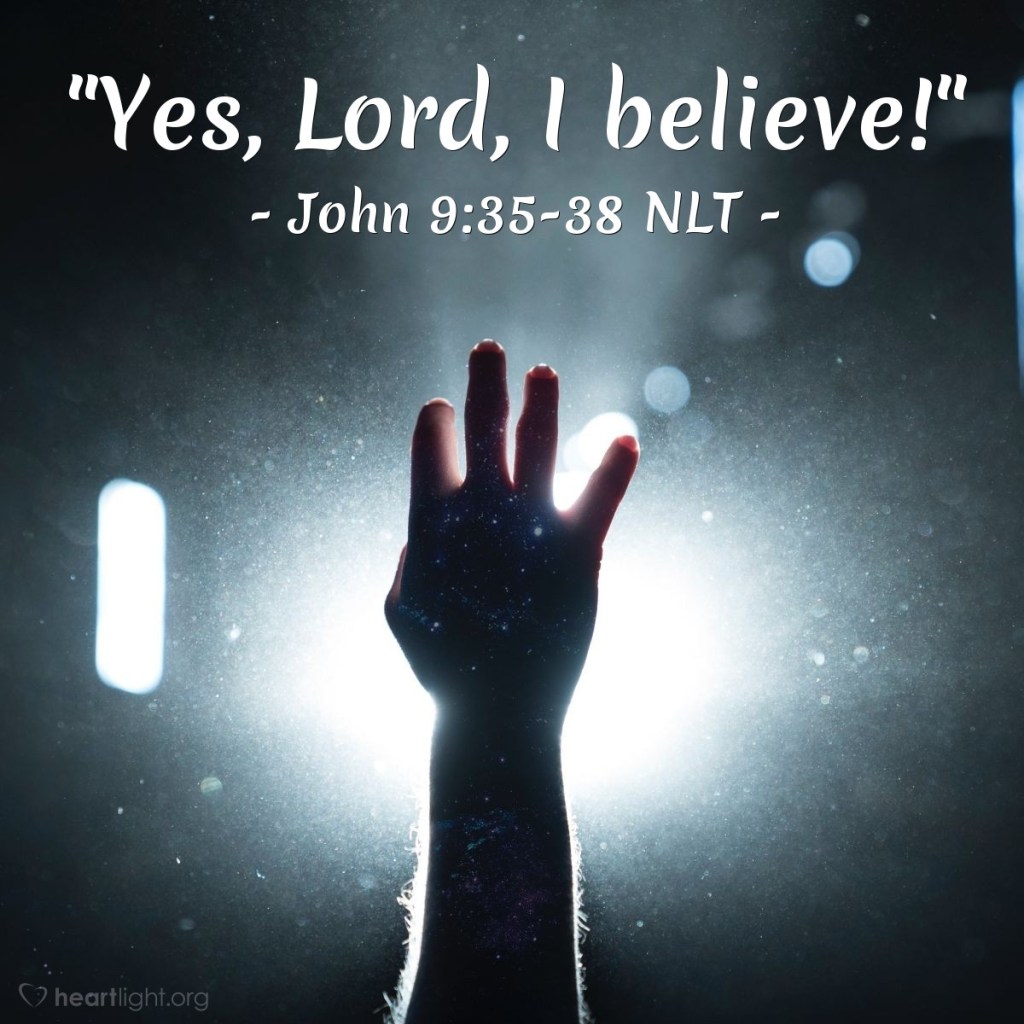 May you be enriched by the confession of the blind man given the gift of sight by faith. No longer are the Pharisees there, “expelled” from Jesus’ presence by their disbelief. Remain with the blind man and Jesus. What is happening to you as you share this silent, loving space together?