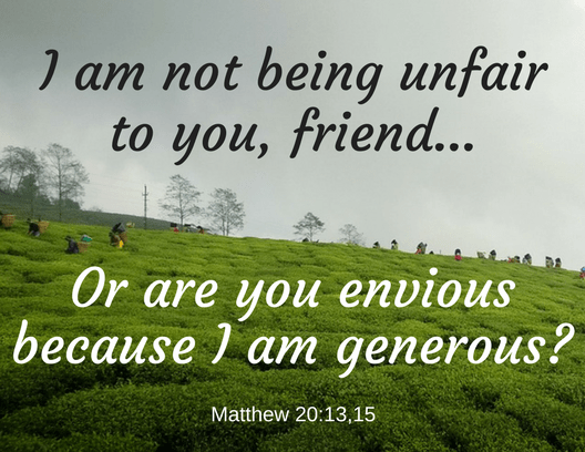 Parables, similar to jokes, have punch lines. Linger on the impact the final verses, until the Kingdom way of thinking rises in your heart. Let go of worldly ways of weighing in the mind—not minding one’s own business … jealousy … looking for rewards. The Spirit gives the Kingdom heart; it does not come from the flesh. In the Kingdom, there is love of serving, joy in another’s good fortune, and praise for the Master’s love of the forgotten.