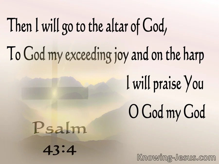 As you stand at the foot of the altar, which is the day that lies before you, this psalm becomes a powerful prayer invoking the presence of the Holy Spirit. The Spirit is your own personal lawyer to plead your case against those personal forces in dark places that are set against you. Greater is God’s power to overcome them, than their power to overcome you.
