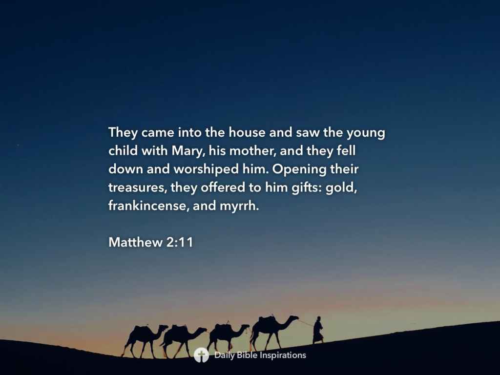 Frankincense is a hard resin from Arabian trees. It looks like stone, until it falls on hot coals, becoming a sweet smelling smoke. Fall upon the fire of the Spirit and the same will become of you. Myrrh, from the Arabic word for bitter, is an ointment offered to Jesus on the cross to soothe his pain. He refused it.