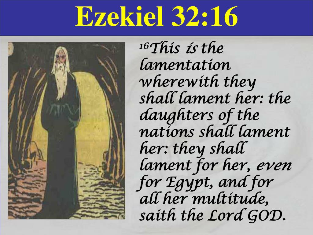 Using the image of a ship, as Ezekiel did in the case of Tyre, he prophesies the destruction of ancient Egypt. Another ancient power will come against Egypt, Assyria, likened to a great cedar tree. Chapter 32 is a lamentation for Pharaoh and Egypt as poetically powerful pictures describe the downfall of this formerly strong nation.