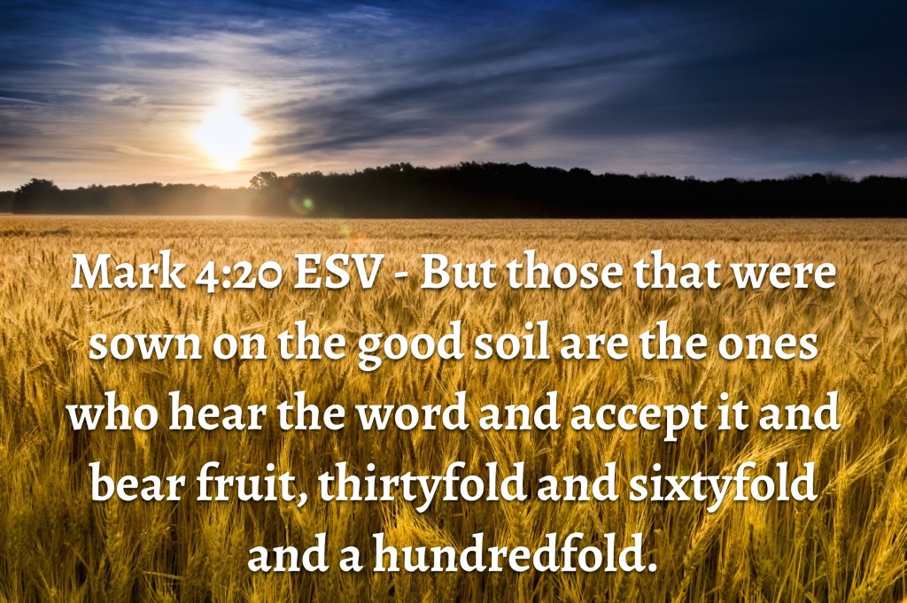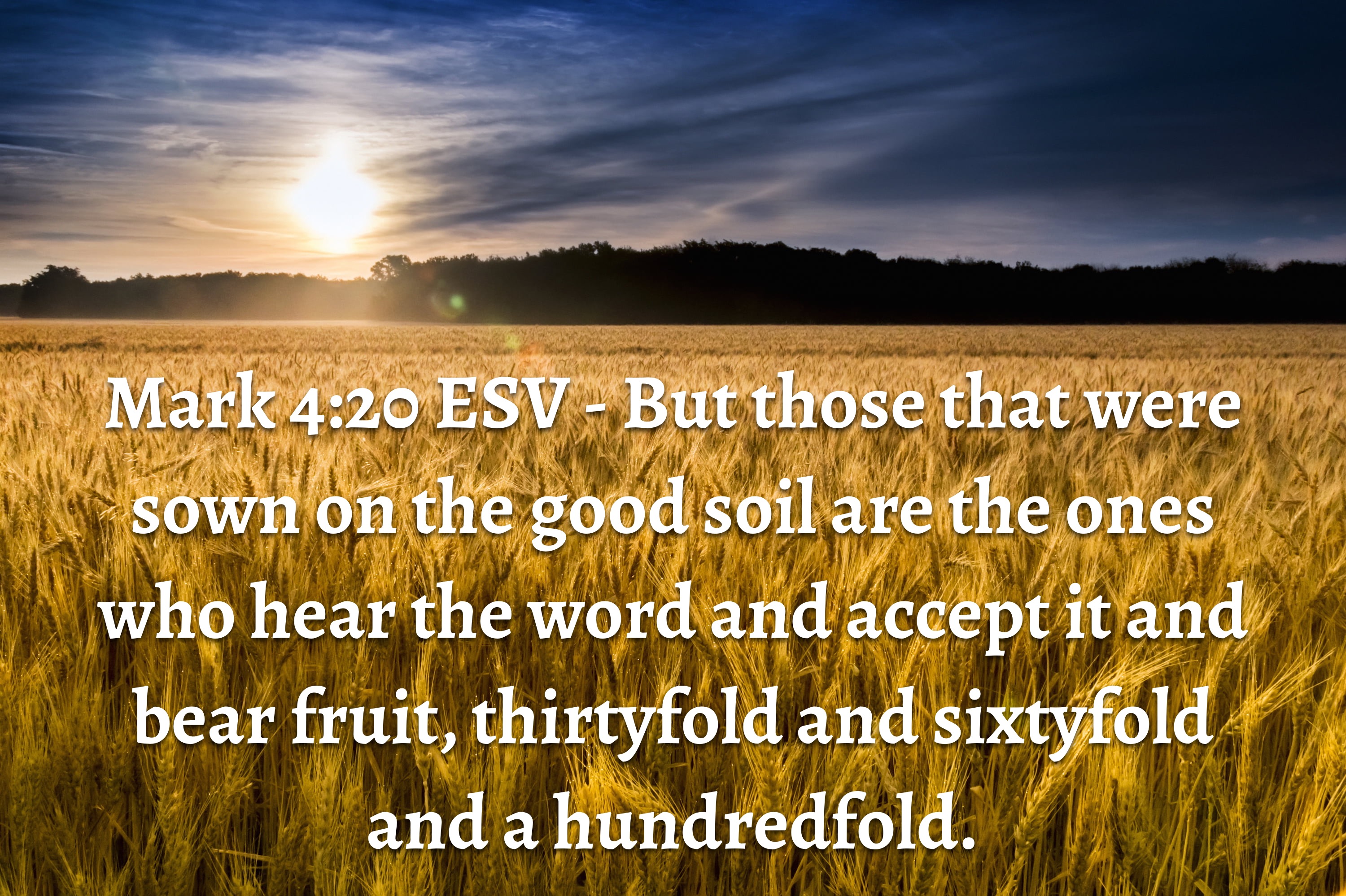 Picture you soul as soil. What kind is it? Is it hard and stony with no place for roots to go deep? If the Lord promised in the prophets that God would turn stony hearts to hearts of flesh, how much more will he soften yours through his Spirit! The hardness and harshness of your soul becomes as soft as sifted soil. The finger of God pushes the seed of the Word into your heart.