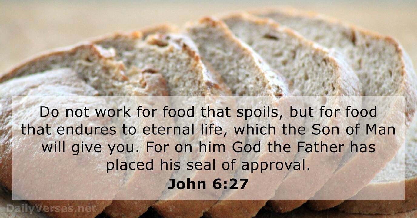 Bread of the earth brings hunger again—but not Jesus, the Bread of Heaven. Receive in faith. For St. John, “to believe,” means, “to adhere to Jesus.” If you cling to Jesus on the cross, he will draw you up in resurrection.