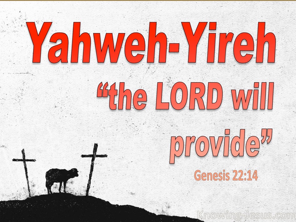The Lord-Will-Provide—what a lovely name for a place! This is the name that Abraham gave to the place where the ram was offered instead of sacrificing his son, Isaac.