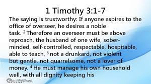 Every Christian is a minister of the Gospel; however, certain ones are appointed to lead or “supervise,” the meaning of the Greek, episkopos. The qualities of leadership described here are ones for us to establish in ourselves, no matter how God calls us to lead. “Married only once,” means faithful to one spouse.