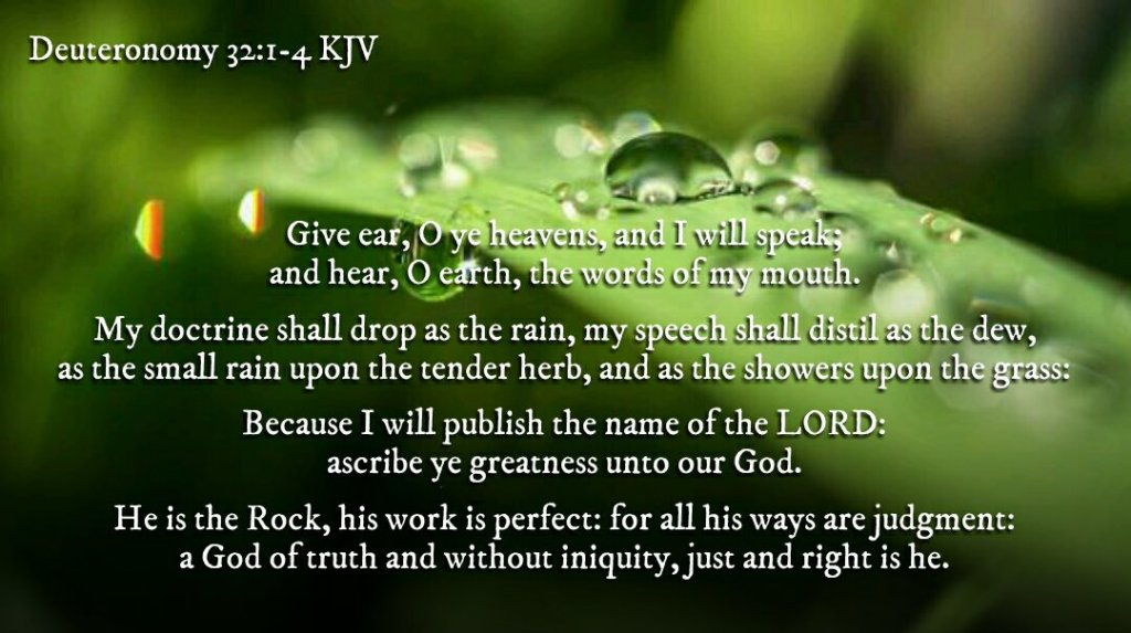 This song was intended to fill the air from generation to generation. The image of a rock appears throughout. It tells what would happen if the people go after other gods and serve them. While the song expresses the anger of God, yet deeper still, it sings of the compassion of a God who continues to lure the people into fidelity and love.