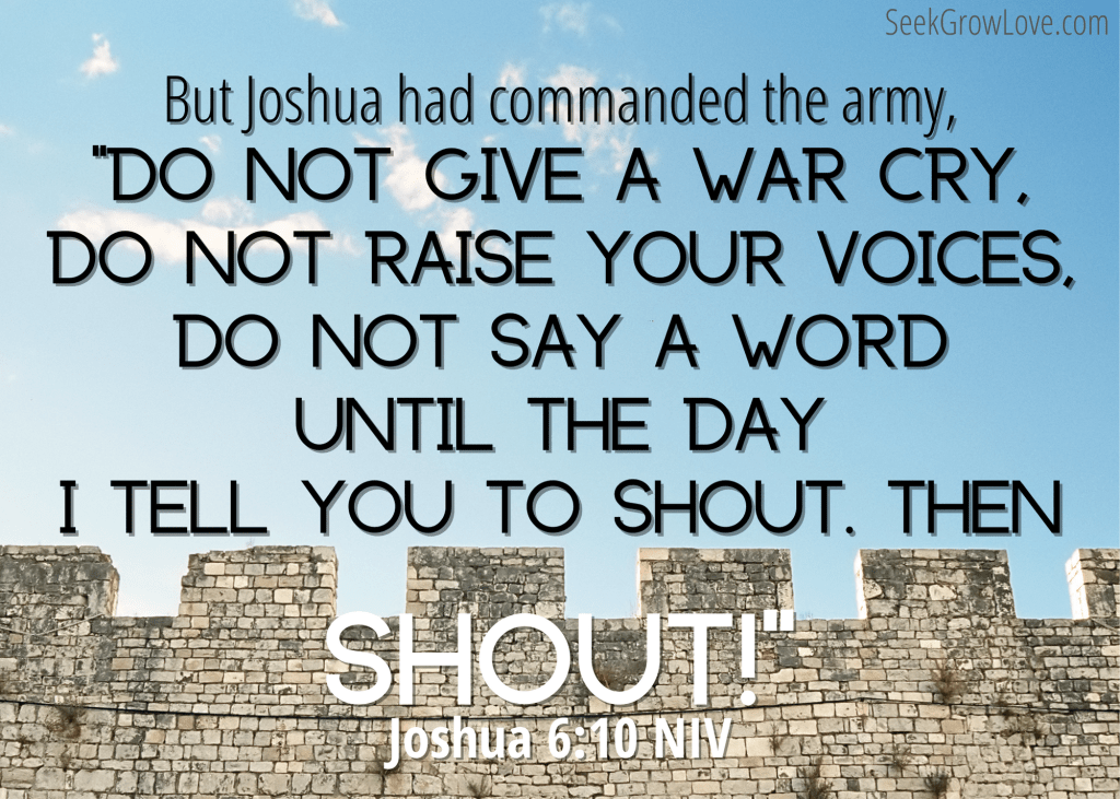 Jericho is taken, not by worldly strategies, but in the Lord’s unique way. It is time for what is “Jericho” in you to fall. Do some walking today in silence. Do not talk. It is Advent. Wait upon the Lord. Allow God to tell you when to make a move with your mouth. The decisive moment will come when God prompts you to speak or shout, breaking in upon any lying spirit that may lurk within your heart behind walls that need to fall. Like the shout when a karate chop breaks wood, let the Spirit break open the stuck and stubborn stuff in your spirit.