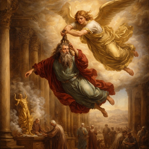 Go with Ezekiel lifted on high between heaven and earth. Behold the visions the Lord unfolds for him. Abominations of idolatry are committed. Feel the jealousy of God as worship of idols is described, with all the horrible practices that accompany this. The purity of God cannot tolerate such contamination. Those that continue to practice idolatry must be eliminated.